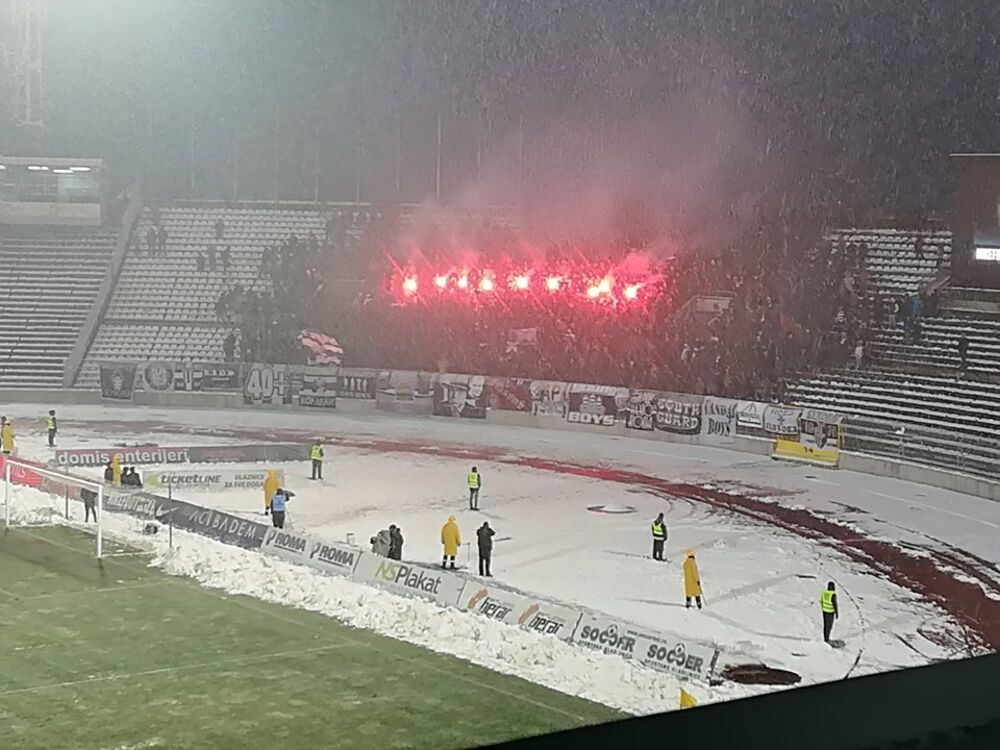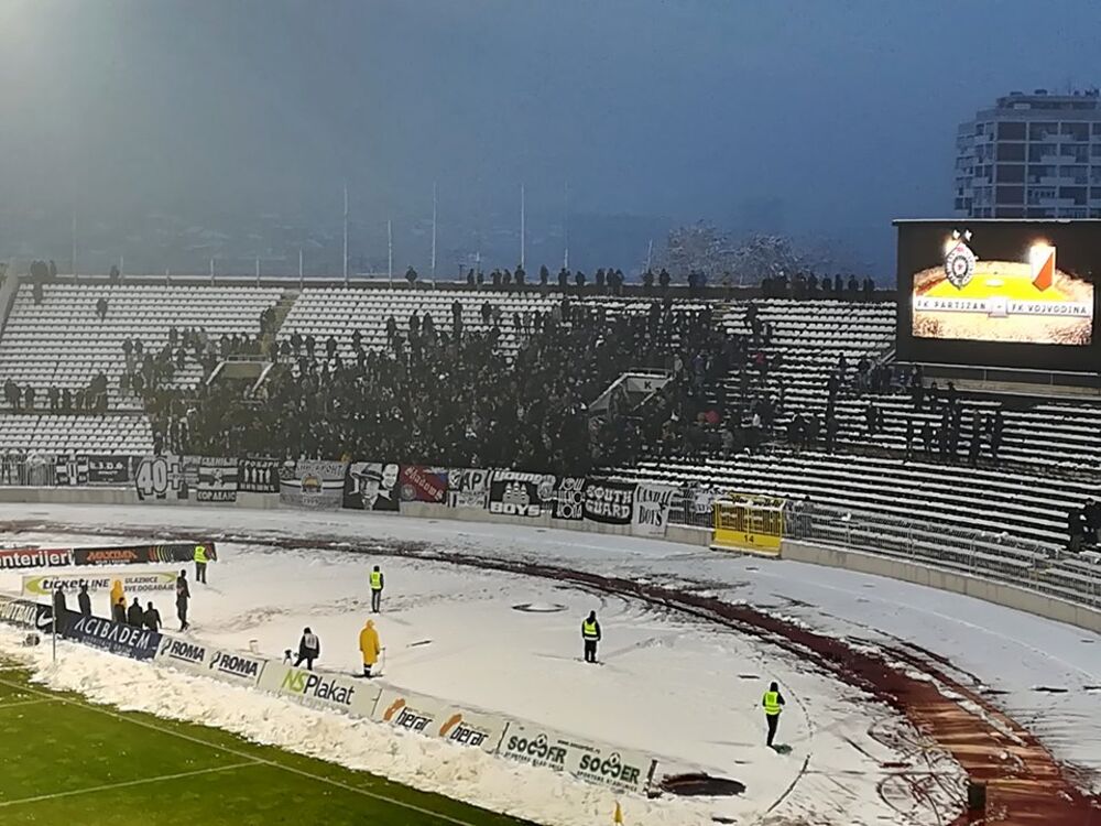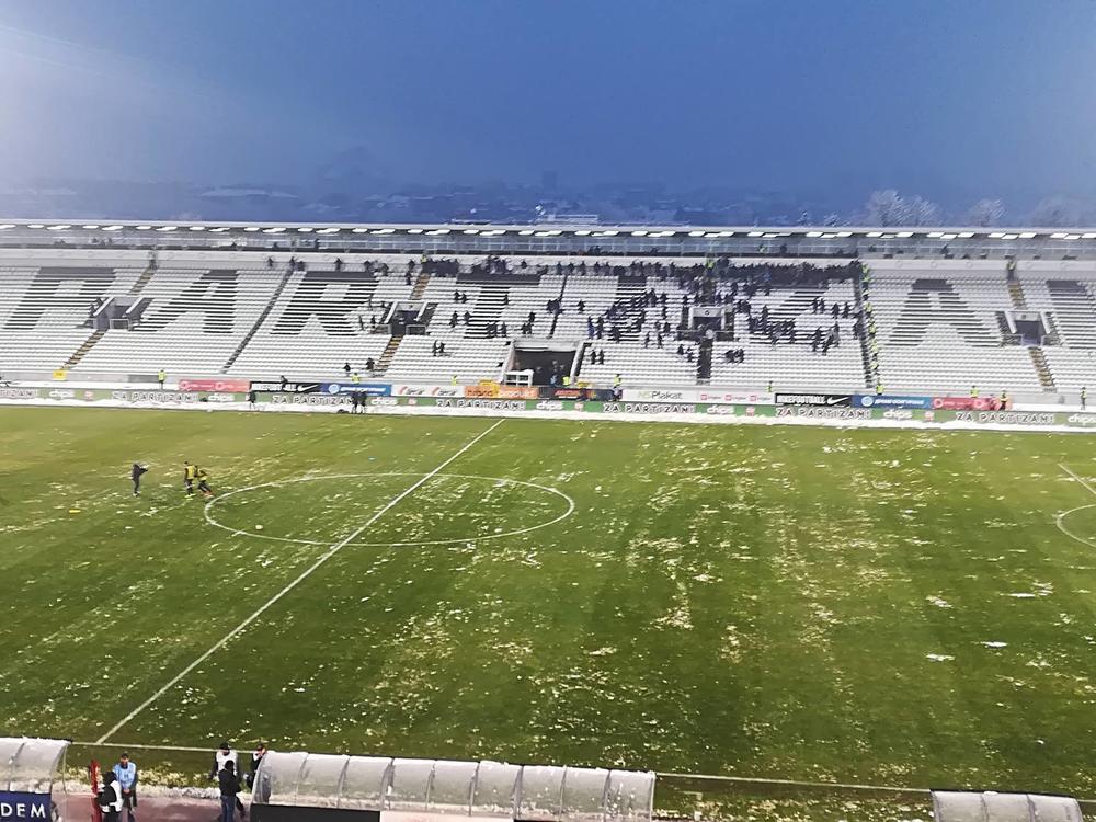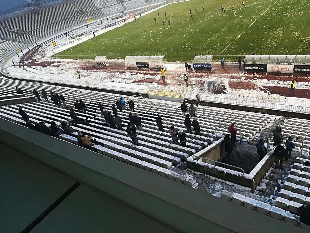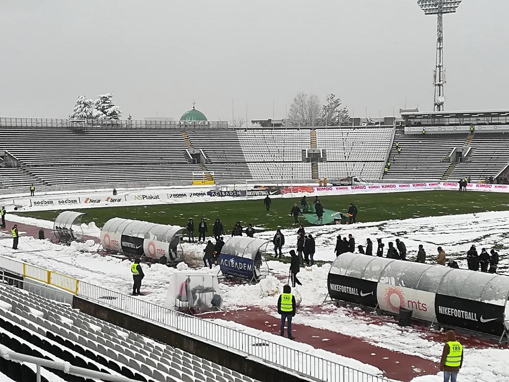 15:00 - Sneg je delimično očišćen, i teren je spreman za utakmicu: