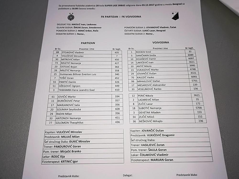 Fudbaleri Partizana odigrali su nerešeno 1:1 sa ekipom Vojvodine u 20. kolu Superlige.