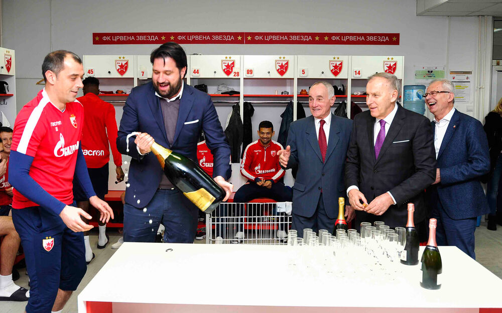 U svlačionici prvotimaca otvoren je šampanjac, jer slavlje je bilo dvostruko. Crveno-beli su nakon neverovatne jeseni zaslužili ove svečane trenutke, zaslužili su da proslave. Nije ih, međutim, potrebno podsećati da slede još dve veoma važne utakmice - o njima se već razmišlja.