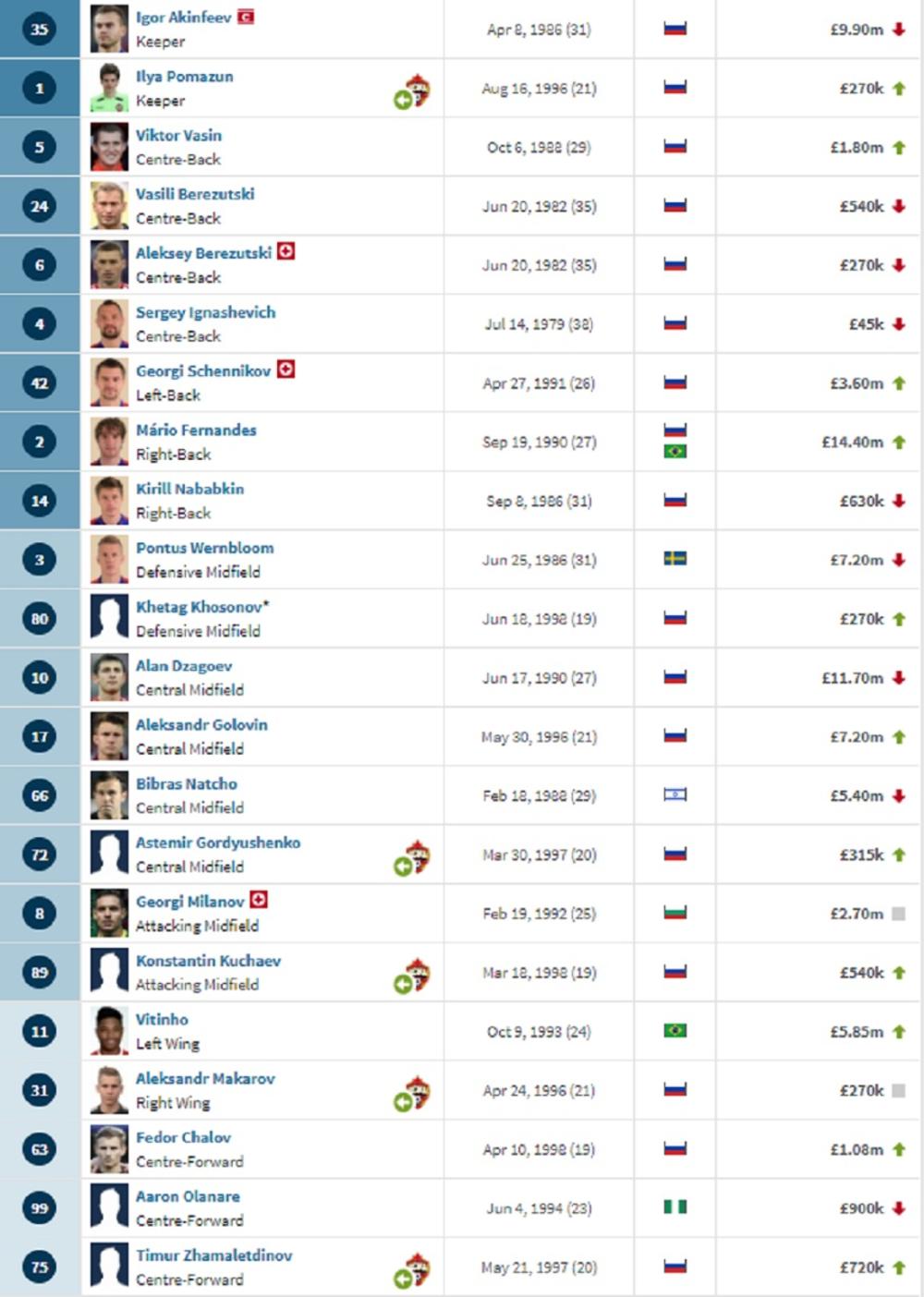 Klub iz Moskve je zamalo ostao bez plasmana u osminu finala Lige Šampiona, podsetimo vodili su na Old Trafordu protiv Mančestera, ali Đavoli su preokrenuli rezultat i zajedno sa Bazelom nastavili takmičenje u najjačem evropskom takmičenju. U Ligu šampiona su se plasirali preko Jang Bojsa i AEK-a i to bez primljenog gola.