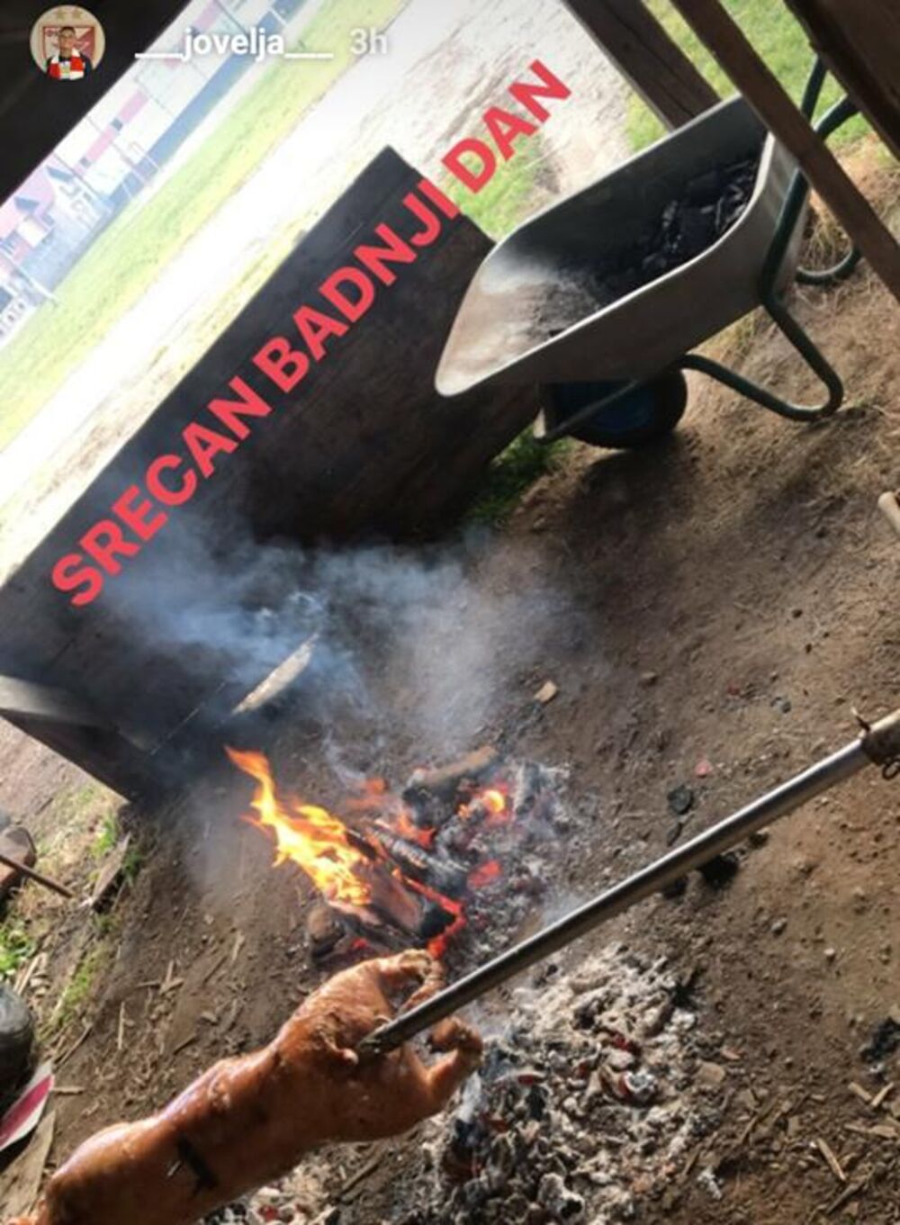 Dejan Joveljić, mlada golgeterska nada Zvezde, pekla je prase.