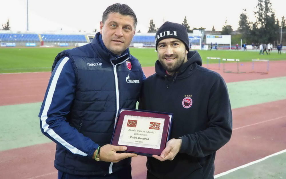 Predstavnici kluba navijača Olimpijakosa iz Pafosa došli su na Kipar kako bi pozdravili ekipu Crvene zvezde i poželeli joj mnogo sreće u Ligi Evrope, kao i u nastavku domaćeg prvenstva.