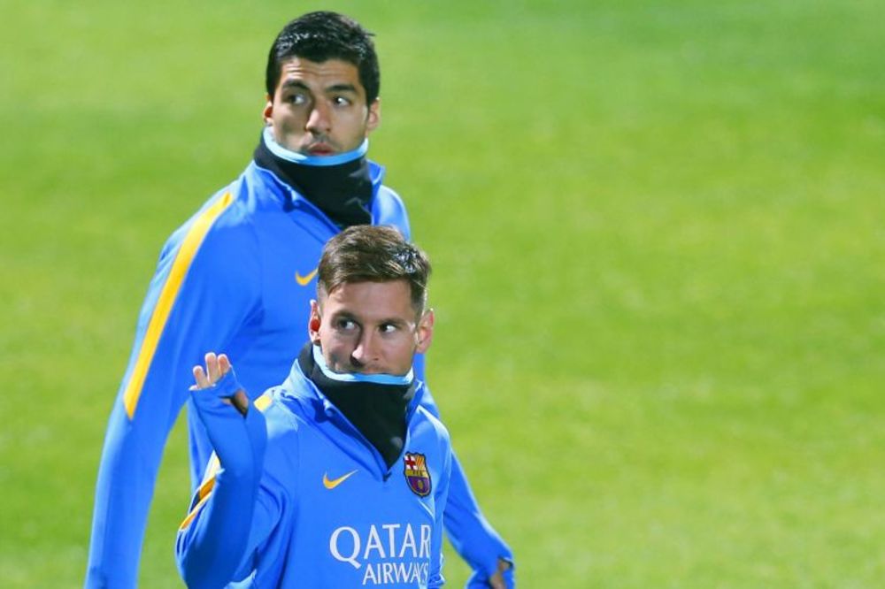 Zvezda Barselone, Lionel Mesi, uživa na treninzima katalonskog kluba. Na treningu ekipe uoči gradskog derbija sa Espanjolom (subota 16.00), omaleni Argentinac je kroz noge proturio loptu Luisu Suarezu. Urugvajac je reagovao, ali lopta je već bila na drugoj strani...