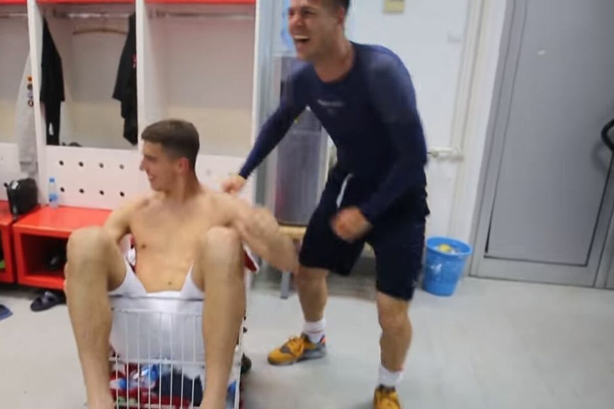 ZVEZDINA SVLAČIONICA POSLE DERBIJA: Babića ubacili u kolica i vozali ga s pivom, Jovičić citirao bivšeg trenera Partizana! (VIDEO)