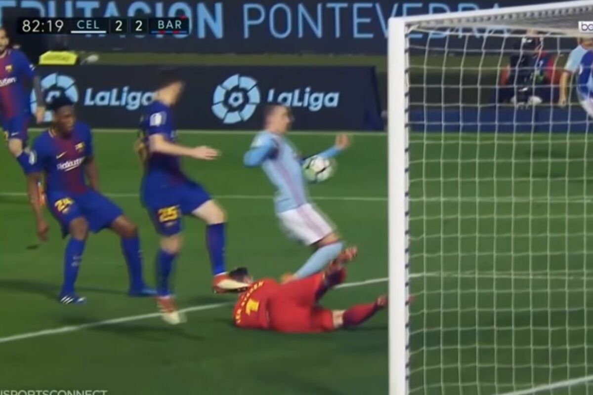 A desetak minuta kasnije domaćin je izjednačio golom Jaga Aspasa, ali koji je bio neregularan, jer se jasno na snimku vidi da se napadač Selte poslužio rukom da bi savladao Ter Štegena.