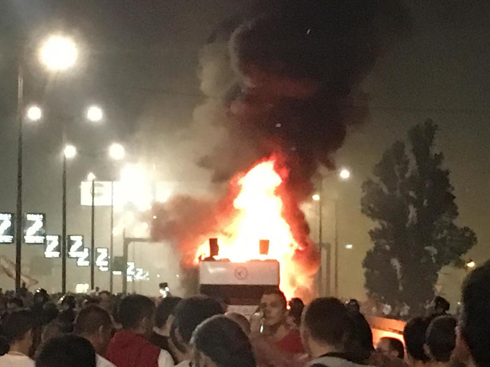 Otvoreni autobus koji ih je prevozio se zapalio u blizini Autokomande i počeo doslovce da gori, a igrači su brže bolje počeli da iskaču iz njega bežeći od plamena.