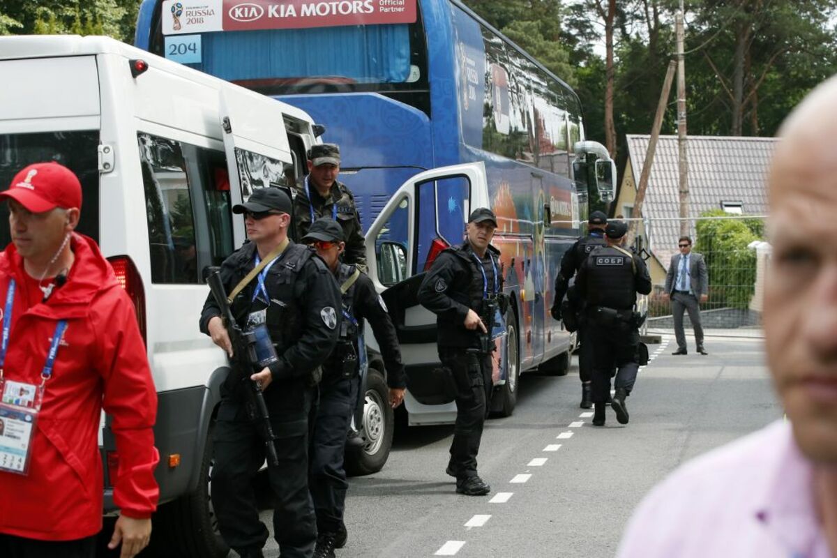 BRAĆO RUSI, A GDE SU ZA SRBE POGAČA I SO?! Putinovi elitni specijalci naoružani do zuba čuvaju srpske fudbalere! (FOTO)