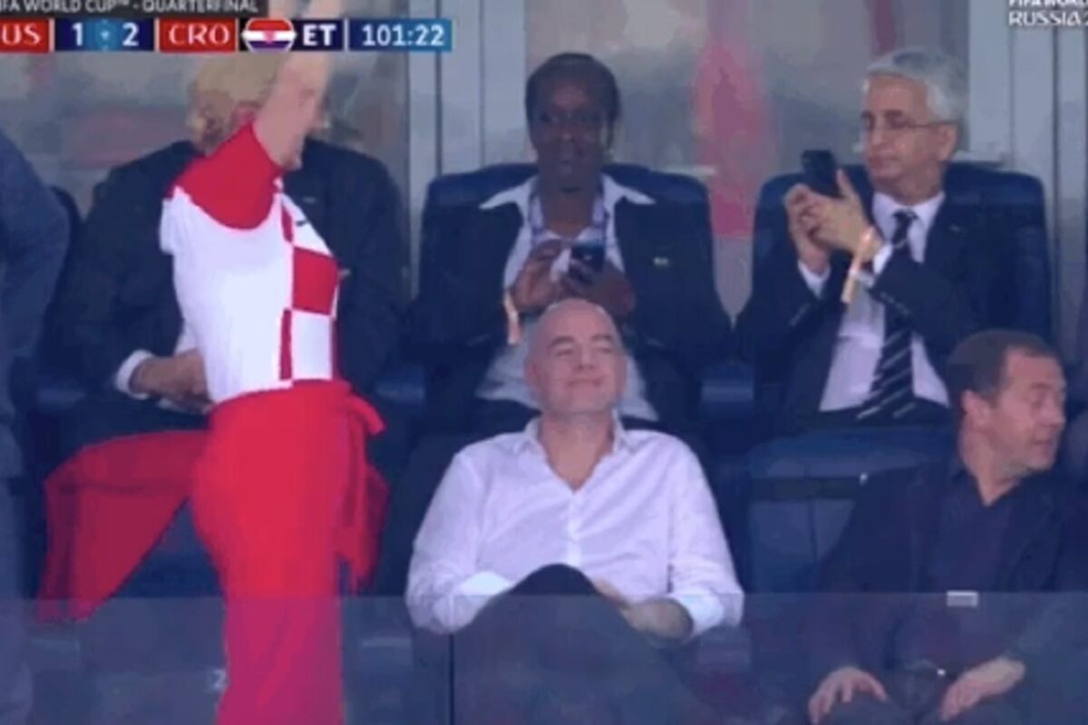 Tokom te utakmice, dogodila se situacija o kojoj se zaista mnogo pričalo - ono kada je predsednica Hrvatske Kolinda Grabar Kitarović u društvu Davora Šukera počela da skače po VIP loži i da se naslađuje golom Domagoja VIde ispred face Dmitrija Medvedeva.
