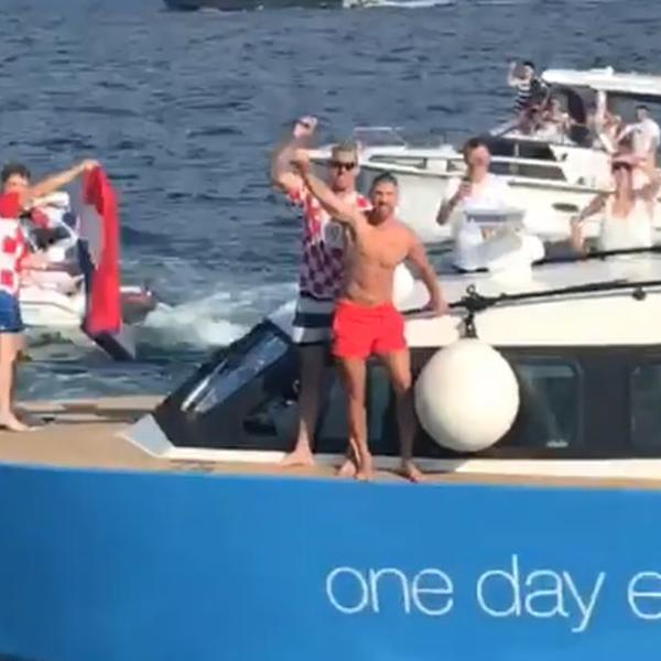 Jedrenjak su pratile stotine brodića, a s njega su navijačima mahali Modrić, Subašić, Vrsaljko i Livaković.