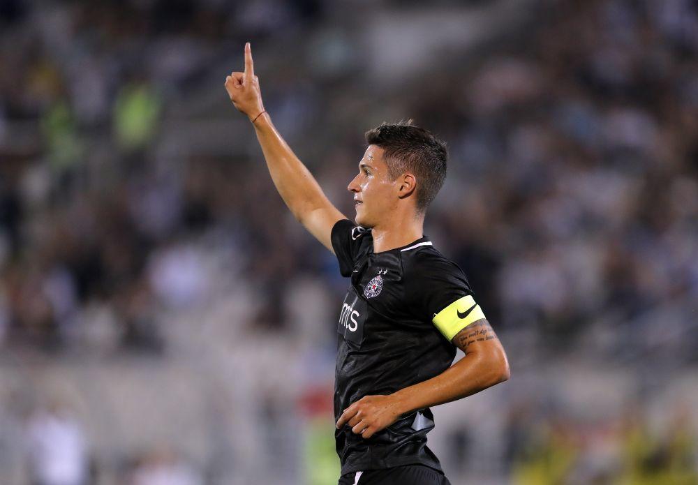 45. minut - GOOOL! Ognjen Ožegović duplira vođstvo Partizana. Odlično se Nemanja G. Miletić izborio za loptu kod kornera, centrirao, a mladi napadač šutira glavom i lopta se o stativu odbija u mrežu.