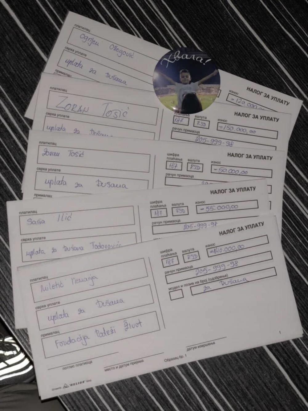 Prvi dres na licitaciji je kupio kapiten Partizana Saśa Ilić i poklonio ga je malom Dušanu. U pitanju res Ivana Tomića iz sezone 96/97. Potrebno je sakupiti 200. 000 evra u narednih sedam dana.