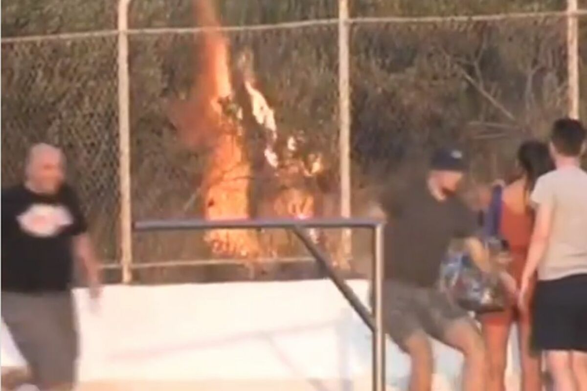Istu je uzeo igrač Uranije sa namerom da je što pre ukloni sa terena, pa ju je bacio iza tribine, ali u masline i šiblje, a na iznenađenje svih pristunih – izazivao je požar.
