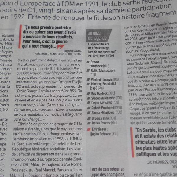 Jedna od glavnih tema u francuskoj štampi ovog jutra je Crvena zvezda, koja gostuje PSŽ-u na Parku Prinčeva, ali ne samo klub, već i njegovi navijači, kojima je zabranjen organizovan dolazak na meč.