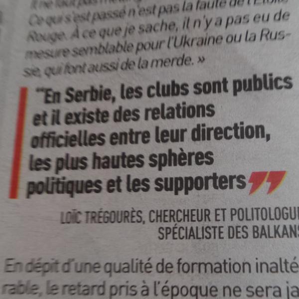 - U Srbiji, klubovi su javno vlasništvo i postoji zvanična spona između klupskog vođstva, visokih političkih struktura i navijača - napisano je nešto što se retko može pročitati u srpskim medijima.