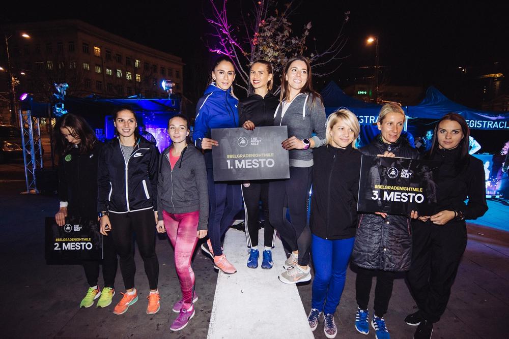 Blizu 200 trkača okupilo se u petak na Savskom trgu, odakle je tačno u 22 časa krenula prva „Belgrade Night Mile“ trka, koju je organizovao tim adidas Runners Belgrade. Ukupno 56 timova od po troje trkača takmičilo se u muškoj i ženskoj kategoriji, trčavši rutom od Savskog trga, preko ulica Milovana Milovanovića i Gavrila Principa. Miodrag Vukić, Miloš Milosavljević i Marko Vozab istrčali su najbržu trku i sa ukupnim vremenom od samo 13 minuta i 25 sekundi, ostvarili pobedu u muškoj kategoriji. Najbolje ukupno vreme, od 16 minuta i 20 sekundi, u ženskoj kategoriji postigle su tri dame, Nevena Jovanović, Ivana Živković i Dajana Petković.