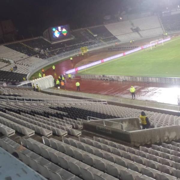 20.05 - Neće biti mnogo publike usled vrlo lošeg vremena u Beogradu, što možemo zaključiti po tome da 45 minuta pre početka meča se navijači na stadionu mogu izbrojati na prste jedne ruke.