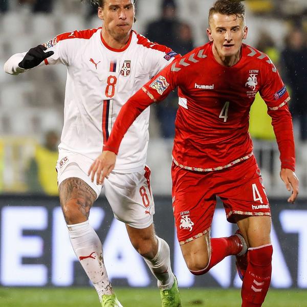 Snažni centarfor je postigao jedan i asistirao Ljajiću za gol i tako doveo našu selekciju do pobede nad Litvanijom i osvajanja prvog mesta u grupi.