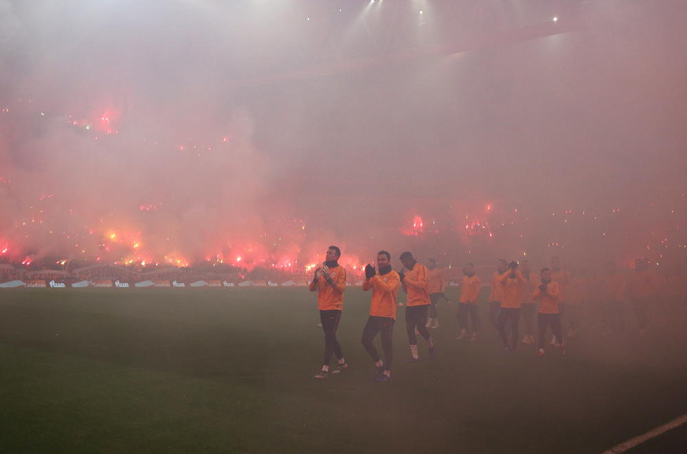 Kada su na teren izašli fudbaleri Galatasaraja usledila je nezampaćena atmosfera koju su ispratile stotine baklji. Ubrzo se stvorila dimna zavesa koja je smetala igračima, ali su oni odradili trening. U nedelju uveče znaćemo da li je ambijent sa treninga pogodavao igračima Galatasaraja ili im je stvorio pritisak.