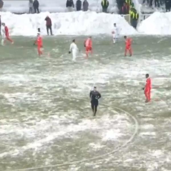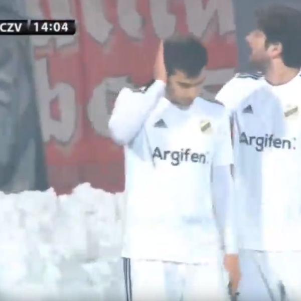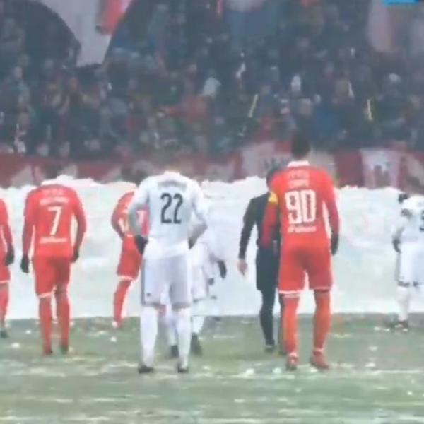 Grupa navijača je shvatila kao dobru zabavu da iskoristi sneg i pravi grudve, a potom i da njima gađa igrače i sudije na terenu. Uglavnom to čine pristalice crveno-belih.