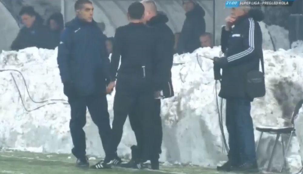 U daleko od optimalnih fudbalskih uslova meč na Banovom brdu se ipak igra, ali sada osim snega i leda na terenu, problem prave i navijači.
