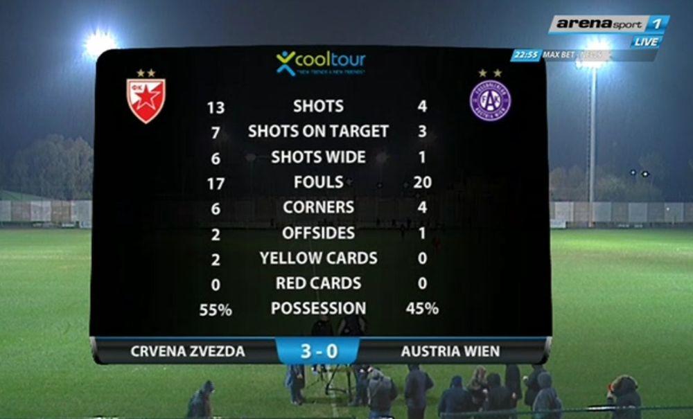 Ben je načeo austrijskog velikana u 24. minutu sa bele tačke, a u nastavku su novajlija Milunović i Babić zapečatili sudbinu Bečlija.