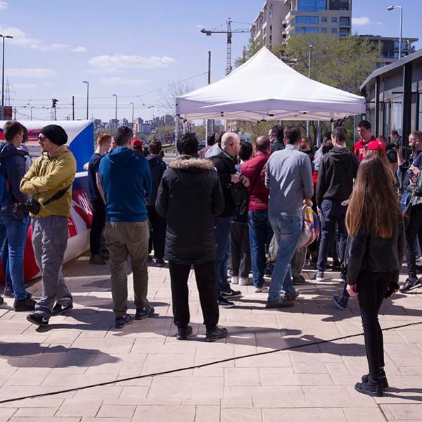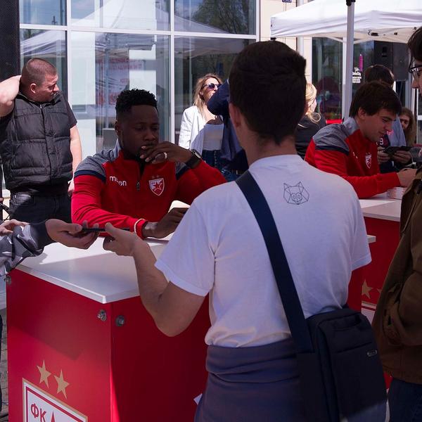 Oni su iskorisitli priliku da ih pozovu na duel protiv Mačve u 28. kolu Superlige u subotu u 19 časova na stadionu "Rajko Mitić". Prvotimci Filip Stojković, Erik Jirka, Milan Gajić i Ričmond Boaći družili su se sa navijačima ispred TC „Delta siti“ i tako nastavili niz akcija u kojima crveno-bela publika ima priliku da se upozna sa svojim idolima.