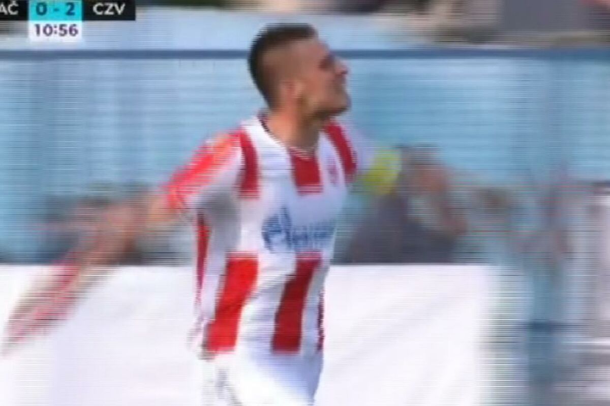 Vujadin Savić proslavlja svoj prvi gol u dresu Crvene zvezde, Foto: Printscreen / O2TV