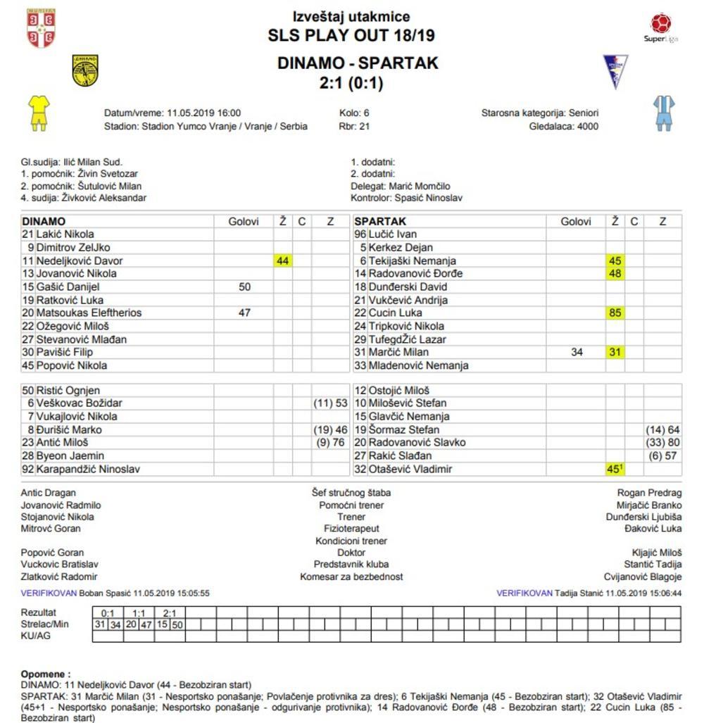 Spartak je istakao da je to nije tačno i medijima je uz saopštenje dostavio i protokol sa te utakmice kao dokaz.