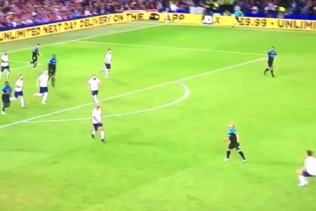 Posle jednog od izvedenih kornera, loptu su glavom iz svog šesnesterca izbacili Englezi, da bi ona došla do Karlosa koji je sa iza leđa, petom prebacio do svog saigrača.