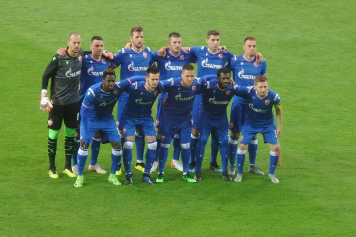19.55 - Fudbaleri Crvene zvezde u plavoj garnituri poziraju pred početak meča.