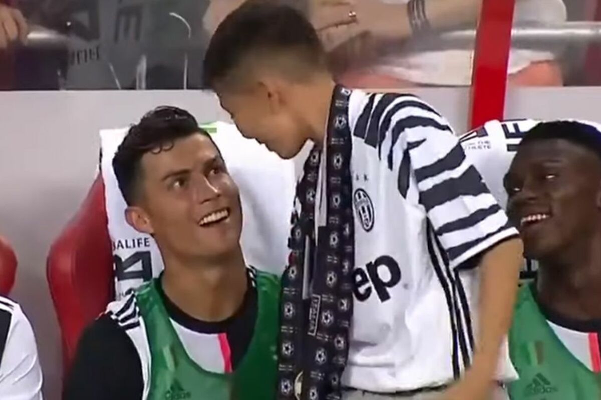 Slavnom Portugalcu nije smetao nezvani gost sa kojim je napravio nekoliko slika, pozdravio se i pričao i dozvolio mu da sedne na klupu sa ostalim fudbalerima Stare dame.