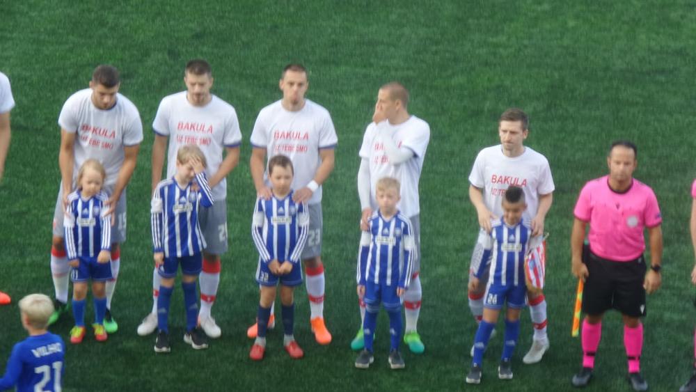 Inače, svi igrači Zvezde su na početku meča nosili majice na kojima je bilo napisano "Bakula, uz tebe smo" koje su znak podrške povređenom saigraču.