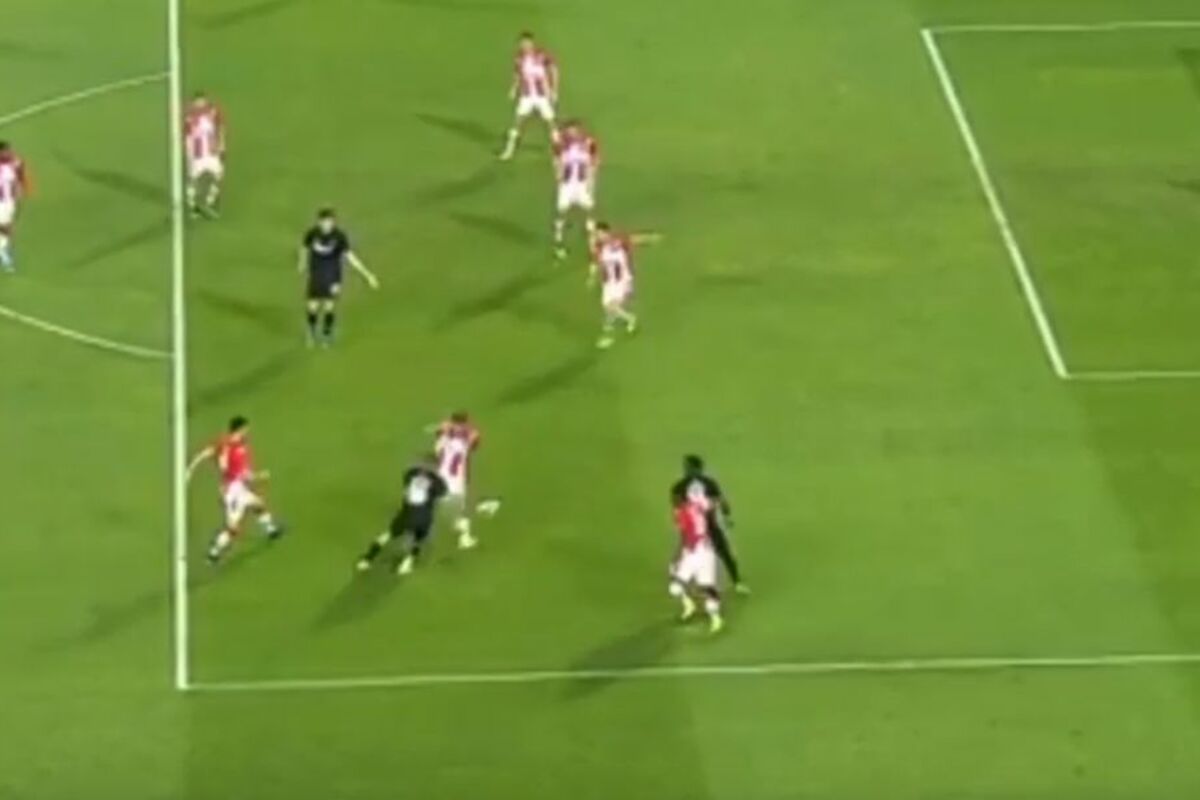 Pepe Biel je pao preko nogu Dušana Jovančića u šesnaestercu Crvene zvezde, a portugalski arbitar nije imao dilemu i pokazao na "belu tačku".