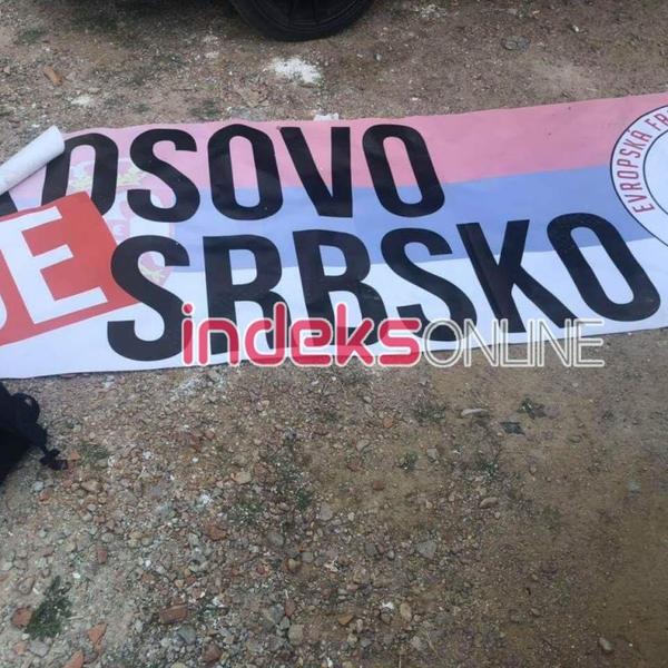 Ta grupa je imala dron, srpsku zastavu i transparent sa napisom "Kosovo je Srbija". Takođe, nađena je pirotehnika i noževi.