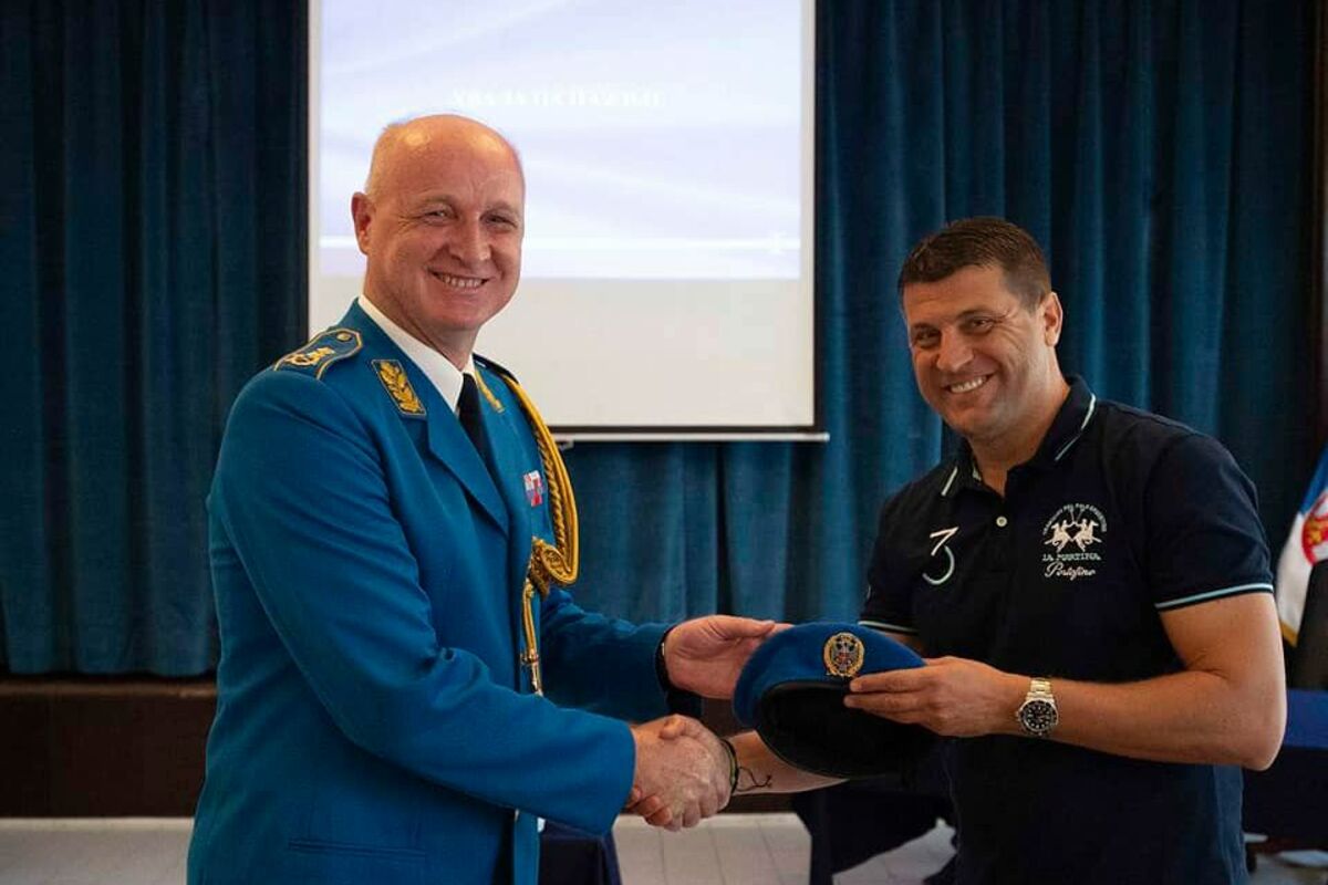 Lepo iznenađenje pripremili su članovi Garde treneru Milojeviću. Nakon prezentacije o radu njihove jedinice general-major Todorović uručio je Milojeviću šapku komandanta Garde, koja je posebna po tome što na sebi ima grb.