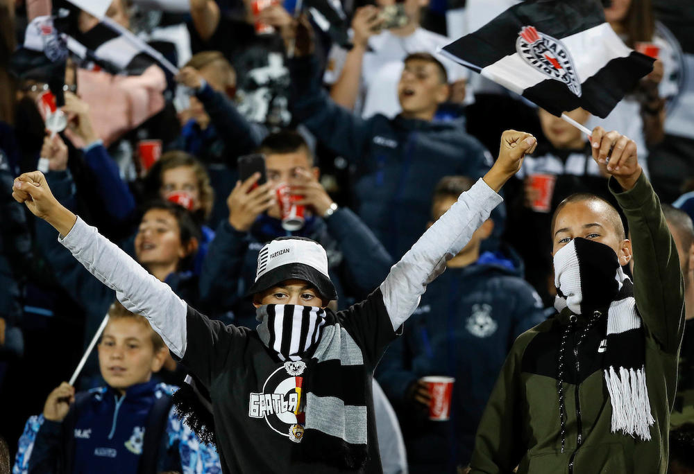 Naoružani šalovima i zastavama Srbije i Partizana pružaju podršku igračima još tokom zagrevanja, pevaju navijačke pesme i skandiraju navijačke parole crno-belih.