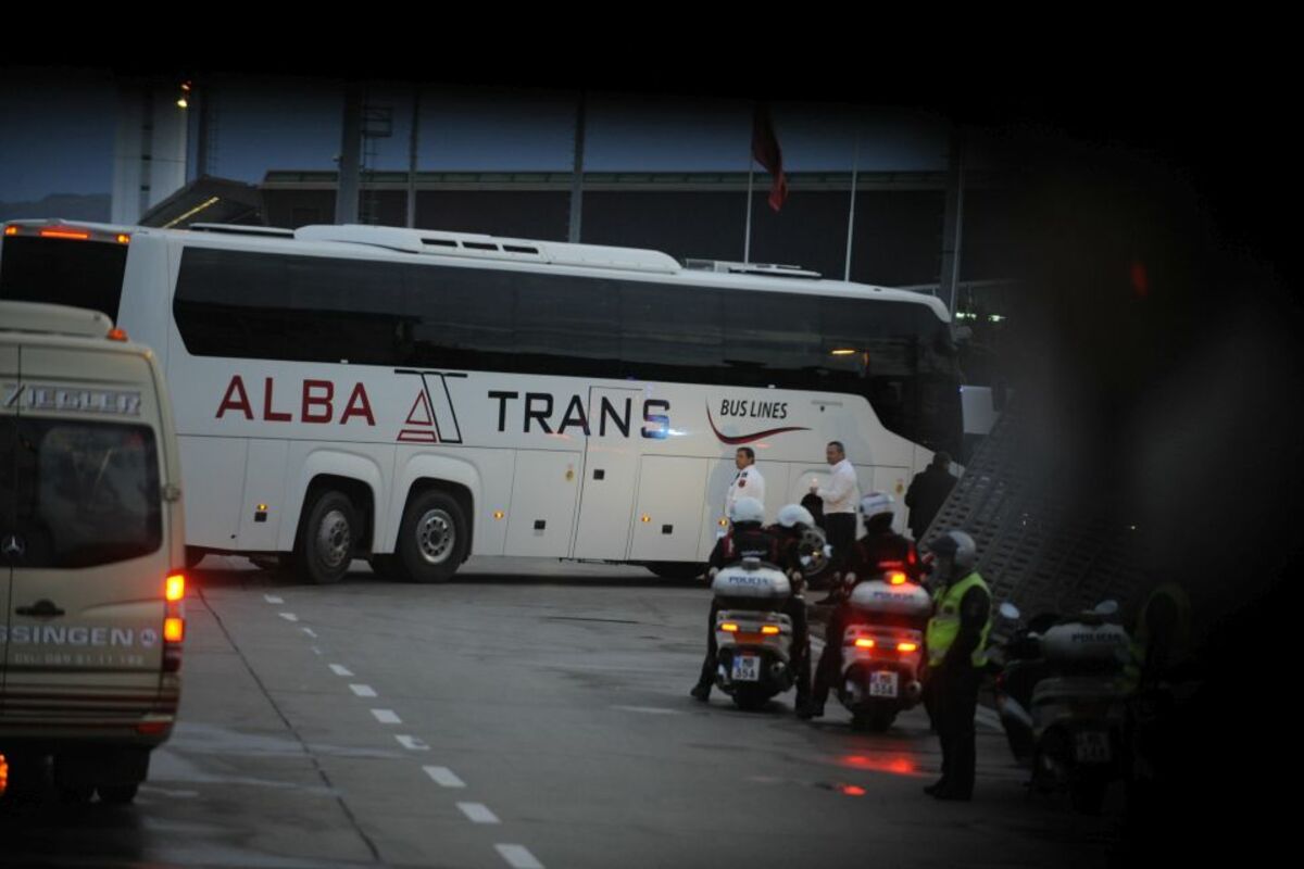 Velika neprijatnost za fudbalere Srbije odmah po dolasku u Tiranu. Autobus koji ih je vozio od aerodroma ka hotelu u prestonici Albanije je kamenovan.