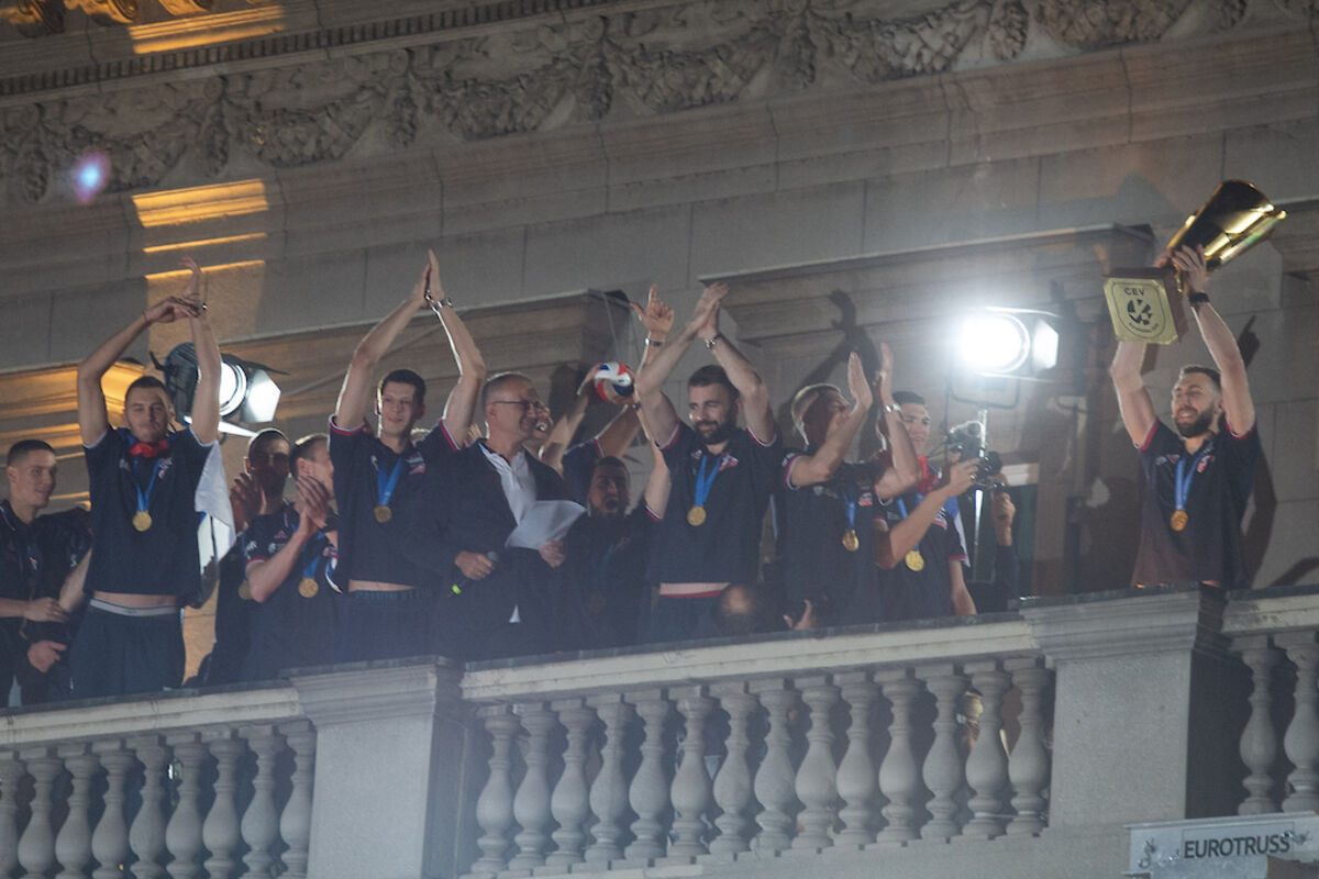 Evropski šampioni su u ponedeljak uveče izašli na čuveni balkon Skupštine grada, gde ih je pozdravilo desetak hiljada navijača.