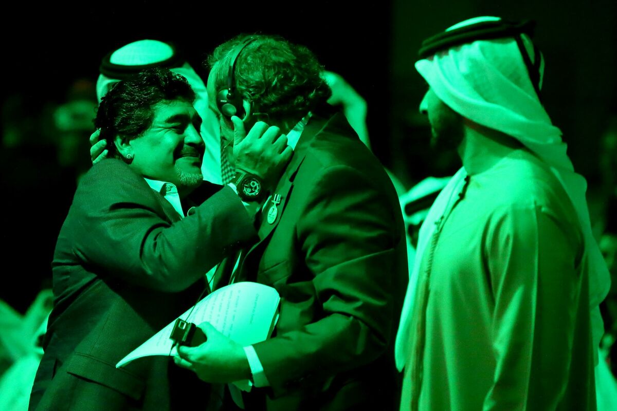 ISPRAVKA: Mišelu Platiniju na viralnoj fotografiji sa Maradonom na dresu ne stoji natpis "ne korupciji"
