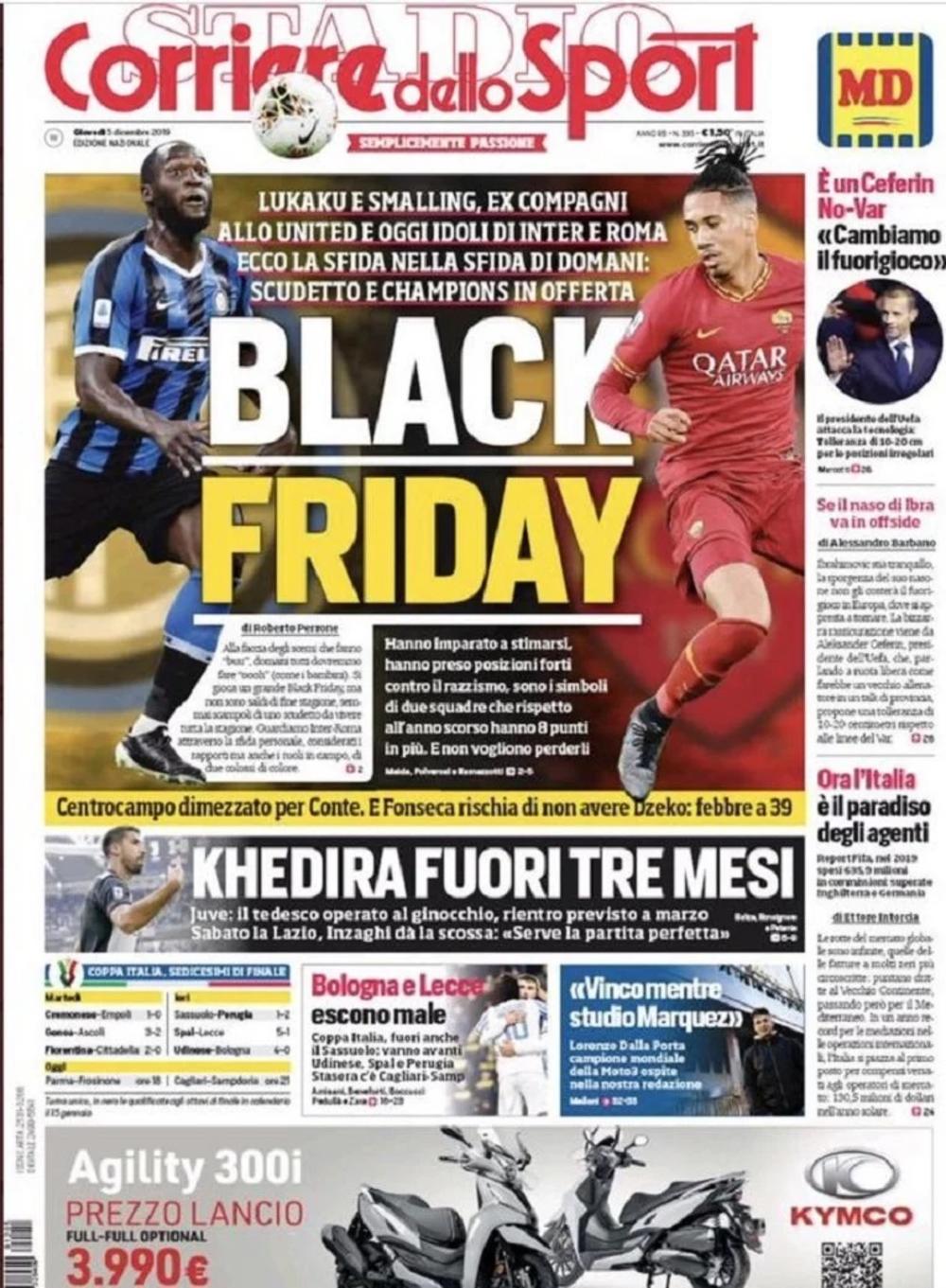 Derbi Serije A između Intera i Rome koji je na programu u petak, italijanski Korijere de lo Sport je najavio skandaloznom naslovnom stranom.
