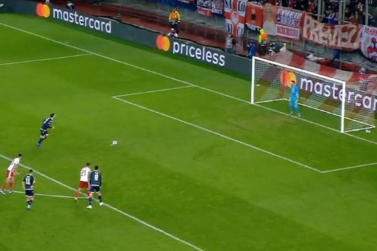 Crvena zvezda je u 40. minutu utakmice protiv Olimpijakosa zaradila penal zbog starta Giljermea nad Markom Marinom u kaznenom prostoru.