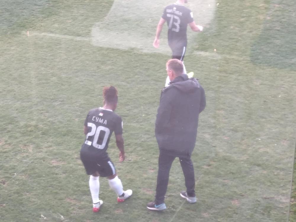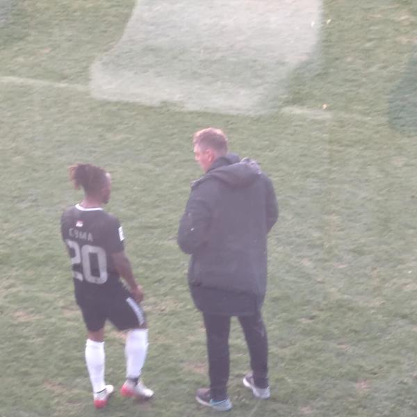 33. minut - Ređaju se sjajne akcije crno-belih jedna za drugom. Suma i Natho ne daju rivalima da dišu na sredini terena. Inače, sa klupe utakmicu praktično vodi Milan Đuričić, pomoćnik Sava Miloševića.