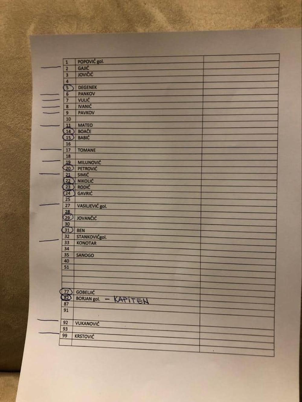 Crvena zvezda: Borjan – Gobeljić (od 64. Gajić), Degenek, Babić, Rodić – Petrović, Jovančić (od 64. Vulić), Ben (od 64. Vukanović), Gavrić (od 64. Simić), Nikolić (od 74. Ivanić) – Boaći (od 64. Pavkov).