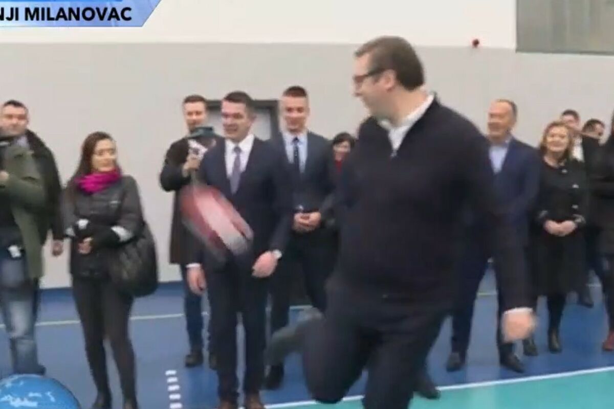 Vučić je, na opšte iznenađenje svih, po dolasku u fiskulturnu salu, zaigrao sa đacima odbojku. Međutim, predsednik je odlučio da pored serviranja lopte pokaže umeće u njemu bližem sportu. Tako je, u jednom trenutku, dočekao loptu i zaustavio je fudbalskim potezom.