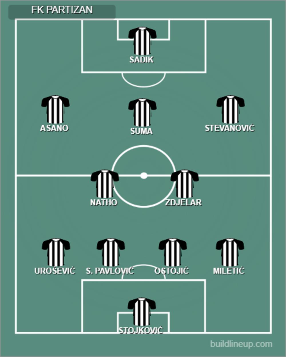 Srpski šampion će u najveći meč našeg fudbala ući u formaciji 4-2-3-1 i to će biti postava koja je odigrala prva dva meča u prolećnoj polusezoni. Nikolić i Gavrić su dva nova imena u odnosu na jesen, a videćemo koliko će "klinci" doprineti ovoj utakmici.