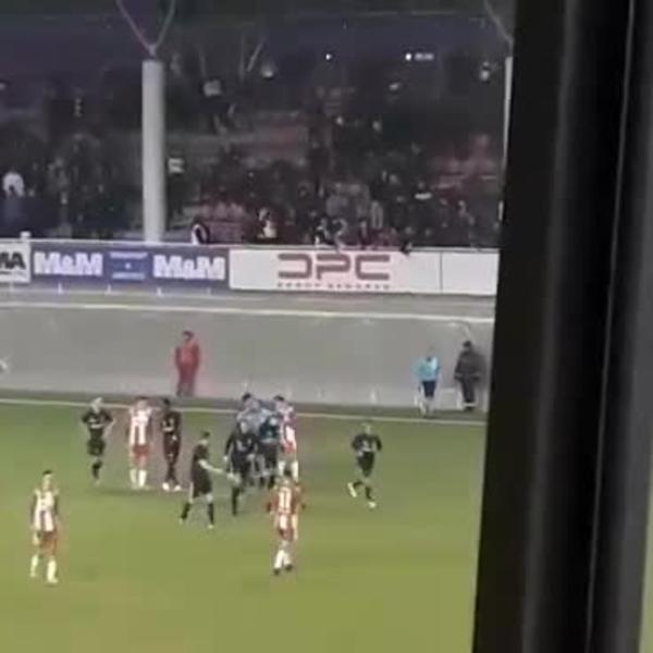 74' GOL! 0:3 ima Midtjiland, opet je strelac Jensen, najbolji igrač ovog tima, koji je posle krenuo i da provocira navijače, zbog čega je nakratko nastala gužva.