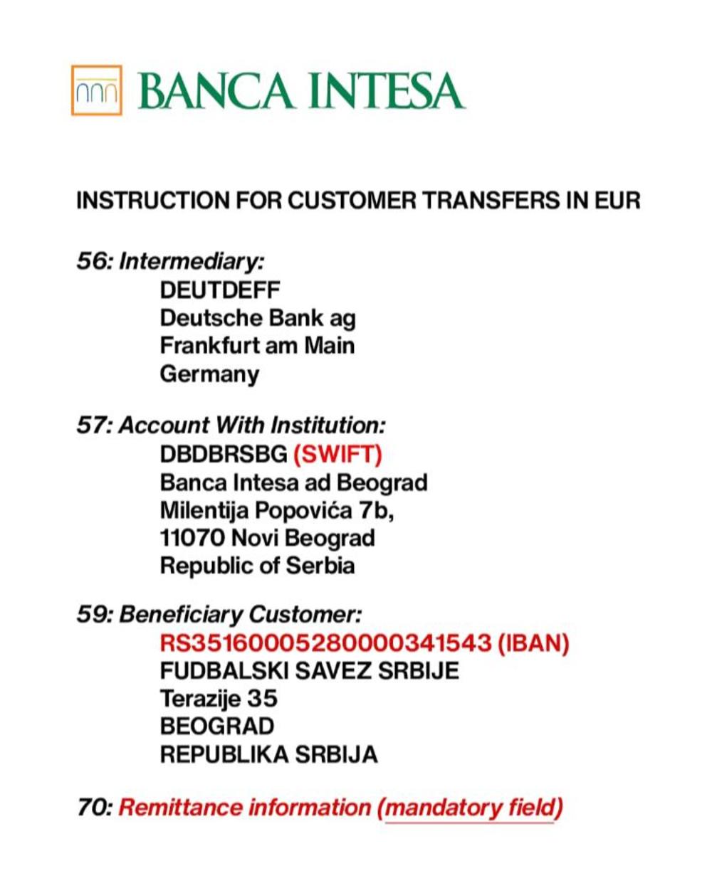 Na ovom se ne zaustavljamo. Počinje druga faza prikupljanja pomoći i ovom prilikom pozivamo sve koji do sada nisu, a u mogućnosti su i žele da se priključe našoj velikoj akciji, kako bi uputili novu pomoć zdravstvenim radnicima koji se svakodnevno bore protiv virusa COVID- 19.Sredstva mogu da se uplate na namenski dinarski humanitarni račun Fudbalskog saveza Srbije 160 – 406494-78 odnosno namenski devizni humanitarni račun, prema instrukcijama sa fotografije - navodi se u saopštenju FSS-a.