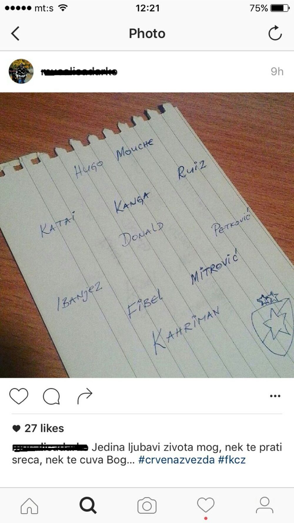 U pitanju je na listu papira iscrtana postava Zvezde za narednu sezonu, u kojoj se nalazi Muče u napadu zajedno sa Ugom Vijeirom.