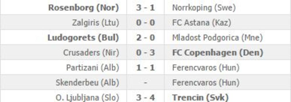 Tako je Ludogorec slavio protiv Mladosti iz Podgorice rezultatom 2:0, Rosenborg protiv Norčopinga 3:1 i Kopenhagen protiv Krusejdersa 3:0
