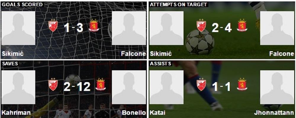 CRVENA ZVEZDA (4-1-4-1): Kahriman - Cvetković, Fibel, Rendulić, Ibanjez - Le Talek - Donald, Mouče, Kanga, Katai - Vijeira.